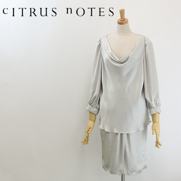 > ◆CITRUS NOTES シトラスノーツ オープンスリーブ ドレープ トップス&タック スカート セットアップ ライトグレー 36