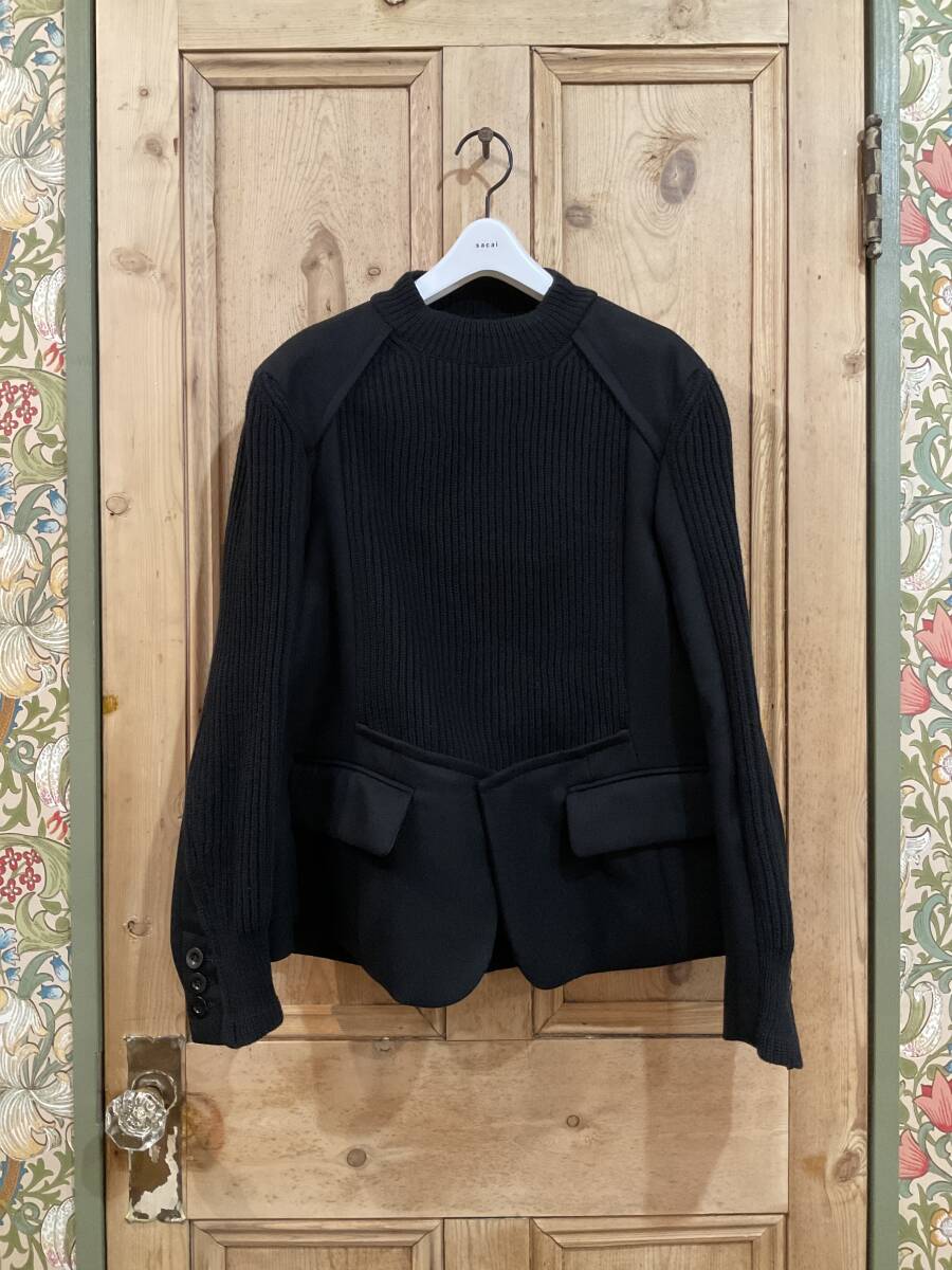 > ◎2023AW 定価104500円 sacai Wool Melton x Knit Pullover 黒 サカイ ドッキングニット
