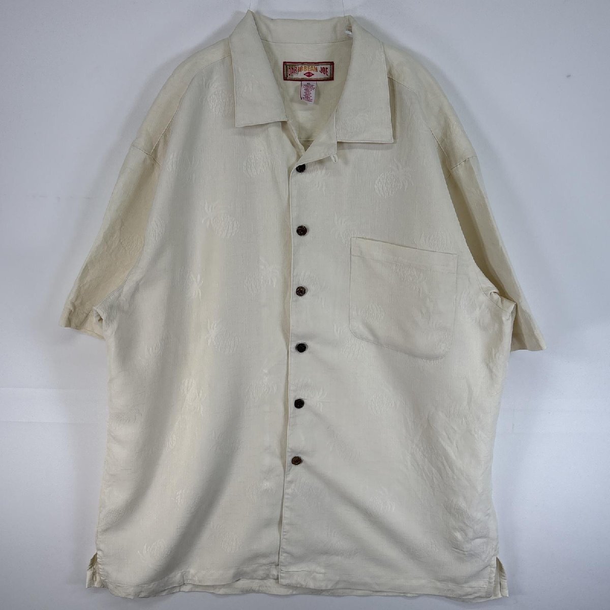 - 古着 カリビアンジョー 半袖シャツ アロハ レーヨン オープンカラー 胸ポケ XL ホワイト 総柄 メンズ