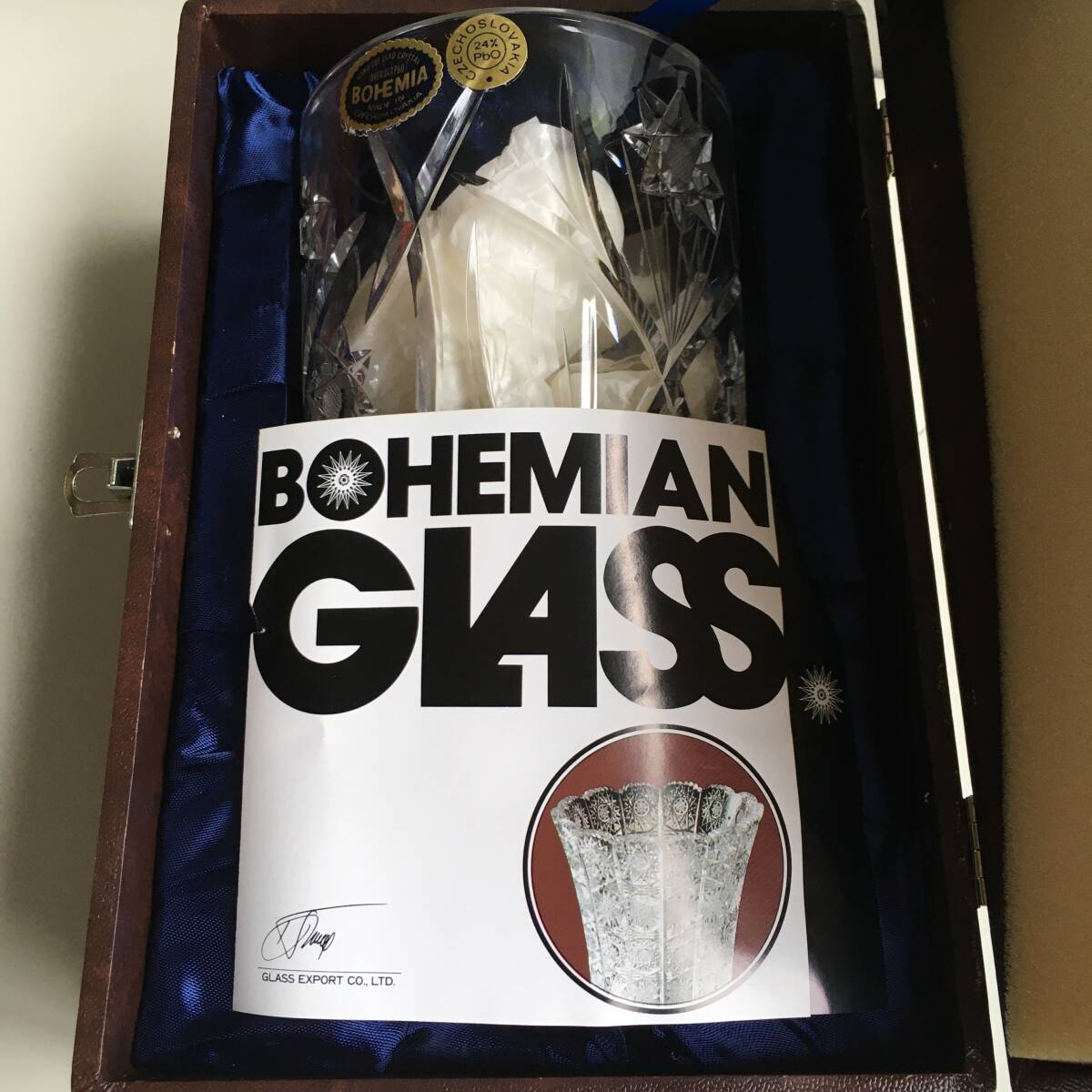 - レトロ BOHEMIA GLASS ボヘミアン クリスタルガラス カットグラス 花瓶 フラワーベース 箱付