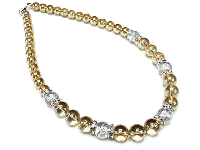 - ゴージャス昇龍手彫り水晶ゴールドアクアオーラ天然石ネックレス50cmプライム
