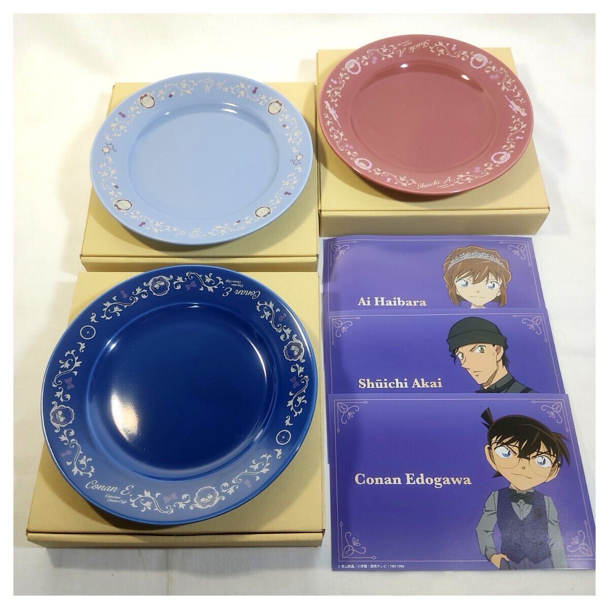 - 名探偵コナンカフェ プレート 3枚 おまとめ サイズ 直径約15cm 江戸川コナン 灰原哀 赤井秀一 未使用保管品 現状品 名探偵コナン