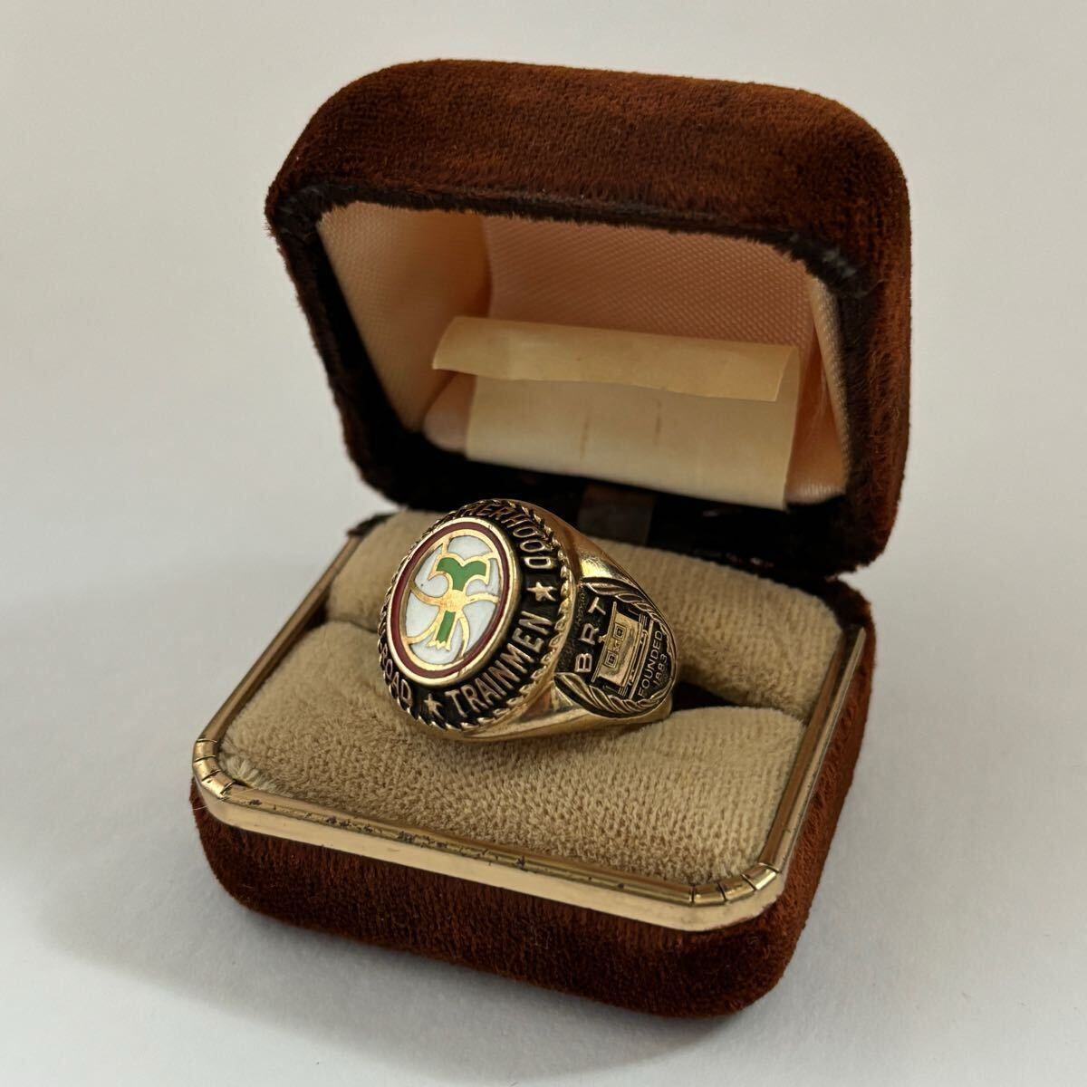 > 激レア【10K】ビンテージ ~60s 鉄道員労働組合 JOSTEN BRT 18 レイルロード カレッジリング アメカジ 40s 50s 古着 指輪 ゴールド 金無垢