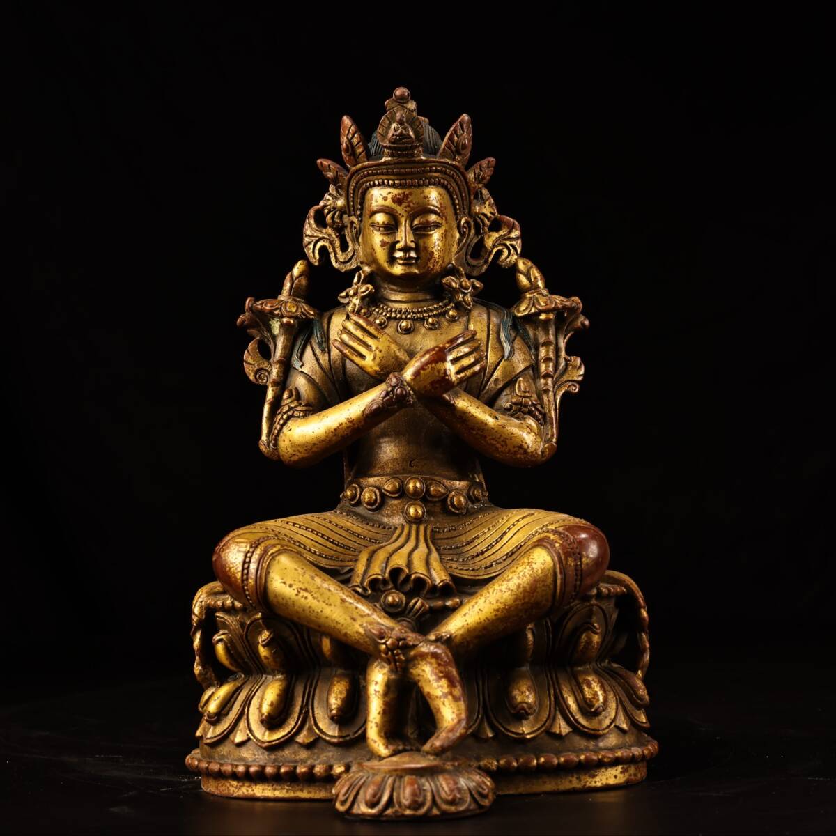 - 蔵友旧蔵出 紫銅製 塗金 藏傳金剛總持像 貴重品 置物 古賞物 密宗密教 供養品 仏教美術品