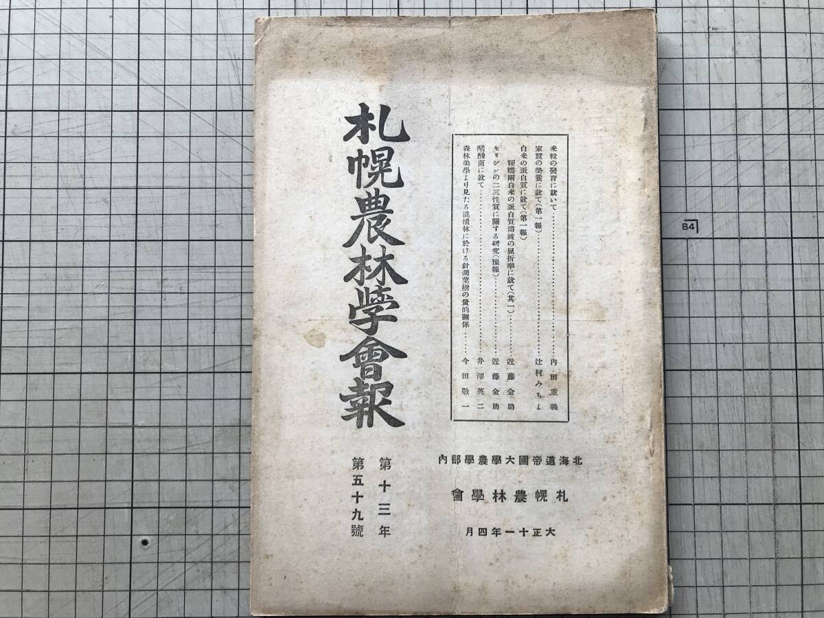 > 『札幌農林学会報 第十三年第五十九号 大正十一年四月』辻村みちよ・近藤金助・今田敬一 他 1922年刊 ※北海道帝国大学農学部 他 00285