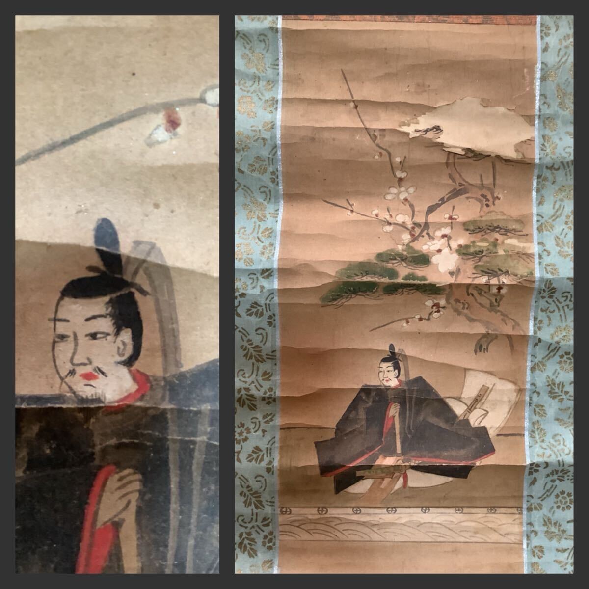 - 掛軸Jun730[天神図]彩色紙本 書いたもの/送料230円 人物画 天満宮 菅原道真公 天神さん古書 無落款