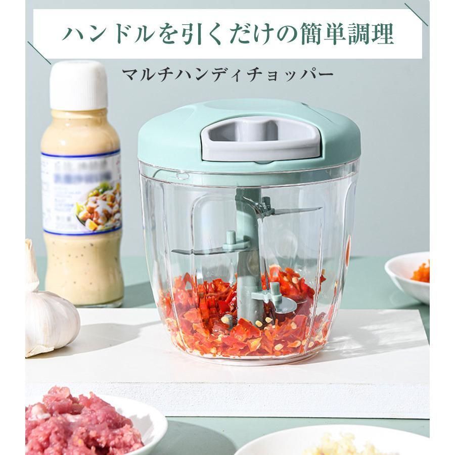 - ハンディチョッパー フードチョッパー 5枚カッター みじん切り 手動 ミキサー スライサー 野菜 肉 電源不要 キッチン 大容量 時短 調理器具