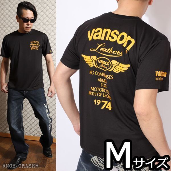 > VANSON ドライメッシュ 半袖 Tシャツ VS21804S ブラック×イエロー【Mサイズ】バンソン