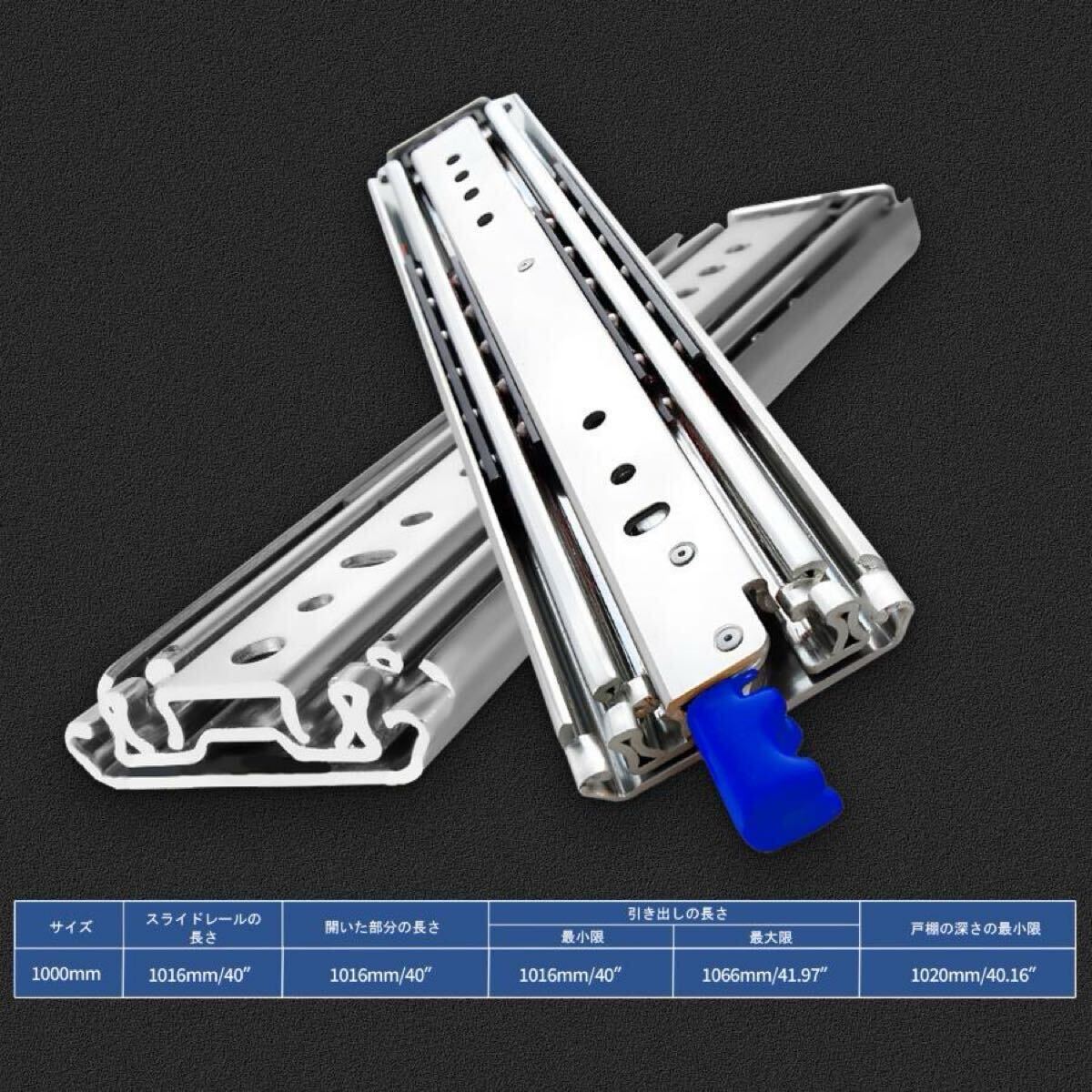 > スライドレール 重量用 3段フル伸縮ロック式 引き出し レール(底引き対応)|幅76mm×長1000mm|5万回耐久 左右1セット