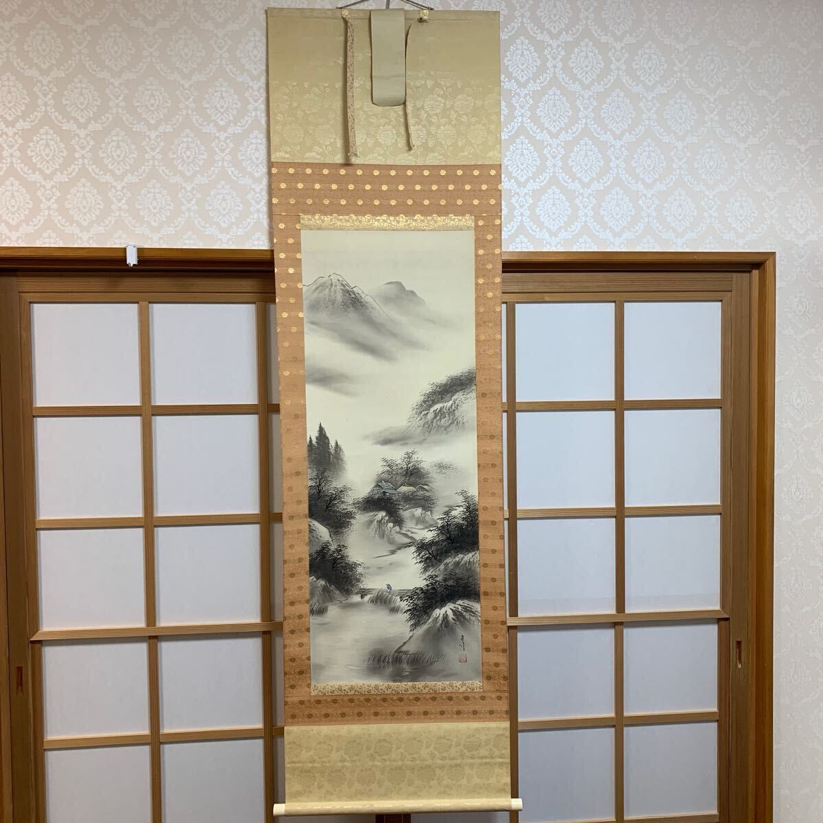 - 掛軸 模写 風景画 山水画 木箱無し 紙箱有り No125