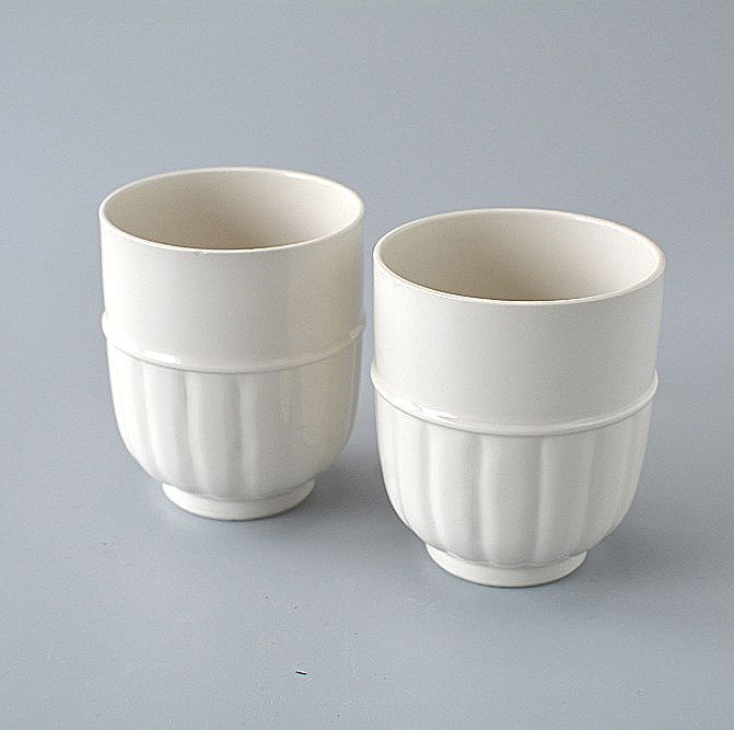 - 湯飲み 2個セット 焼酎カップ 大湯飲み ホワイト縦筋 はまぐり窯