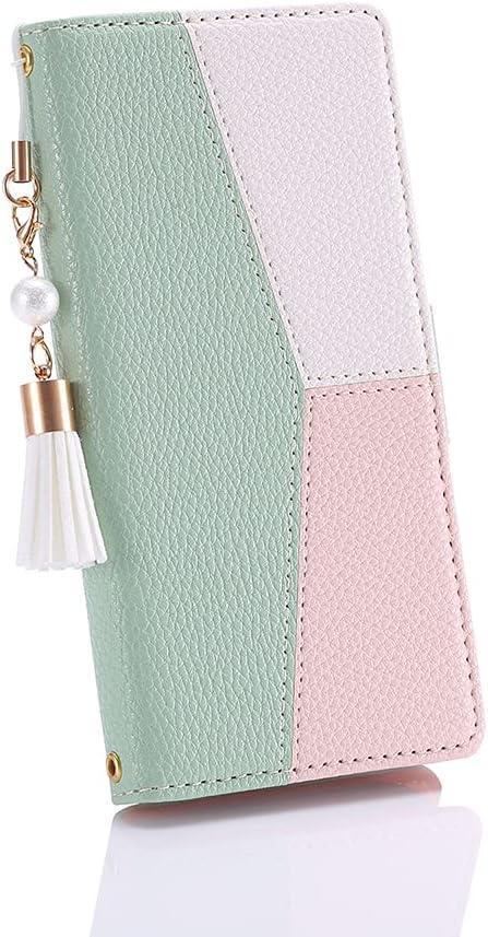 - Galaxy A54 5G SC-53D 手帳型スマホケース 真珠タッセル付き マグネット付き スタンド機能 カード収納付き グリーンとピンク