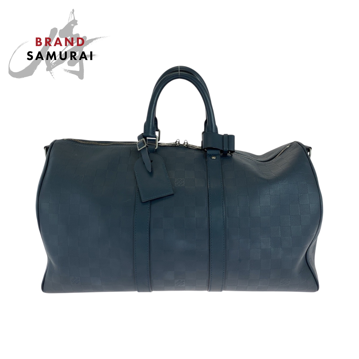 - 美品 LOUIS VUITTON ルイヴィトン ダミエ アンフィニ キーポル45 バンドリエール 男女兼用 ネイビー レザー N41290 ボストンバッグ 503245