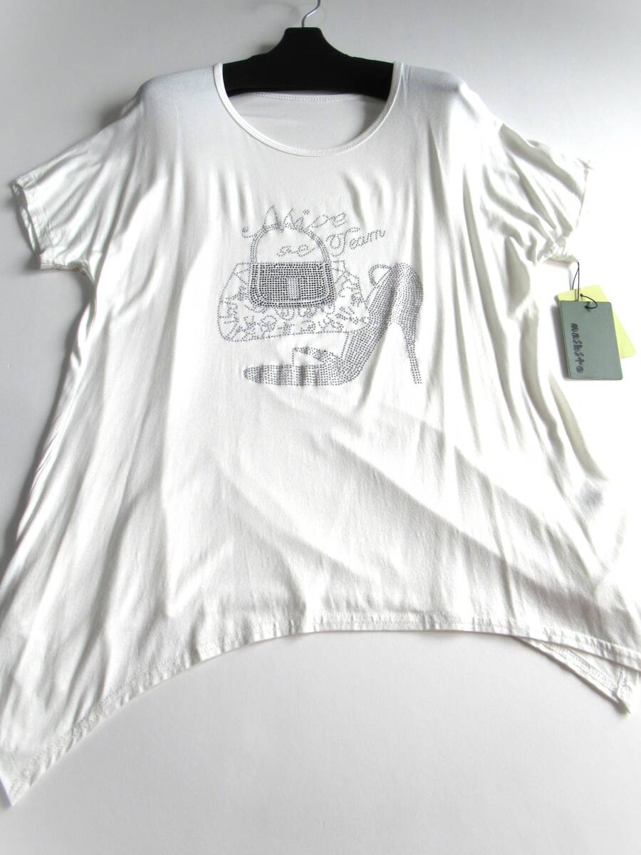 - レディース クルーネック チュニック ラインストーンバック&ヒール フレンチスリーブ ストレッチ Tシャツ 特価セール オフ t1