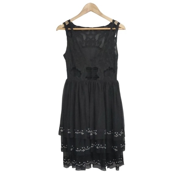 - ナイン NINE サイズF - 黒 レディース ノースリーブ/ひざ丈/レース/シースルー ワンピース