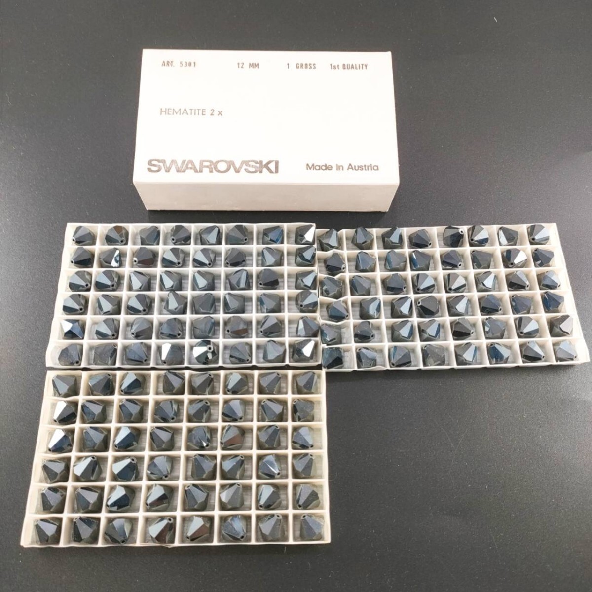 > ☆ほぼ未使用 SWAROVSKI スワロフスキー ヴィンテージ ルース 5301 12MM 1gross HEMATITE 2x ヘマタイト ビーズ R-185