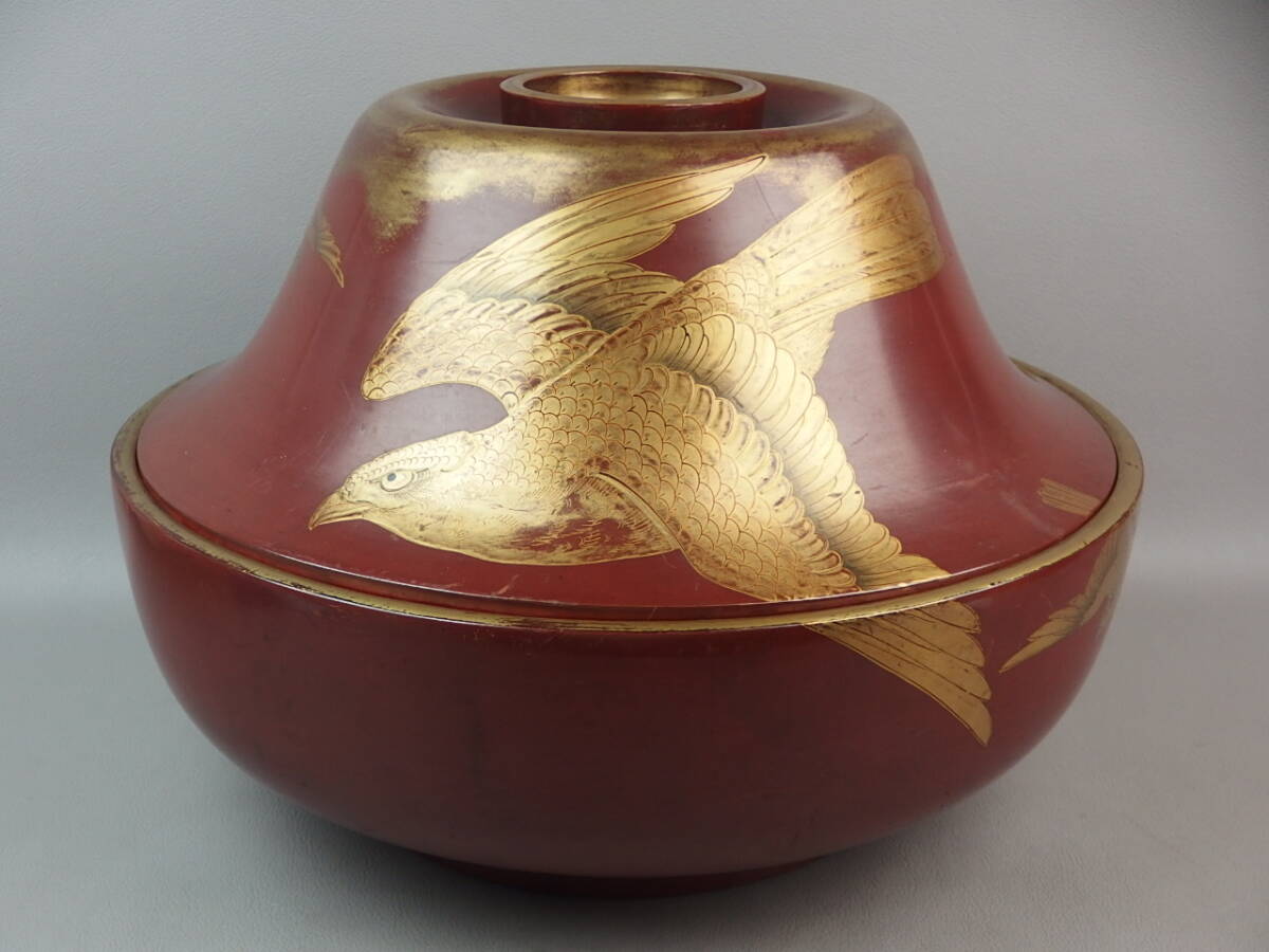 - 【骨董・茶道具】★古い 蒔絵★★鳥絵特大蓋物 大平 食籠 gl005wb.7 椀 菓子器 和食器 大名道具 仏教美術 鷹 鷲 猛禽