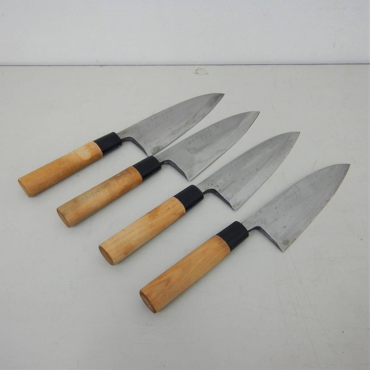 - 【中古】 A06720 和包丁(出刃包丁) 片刃 4本入り 銘不明 刃渡り:150mm 全長:290mm 【調理用】【厨房用