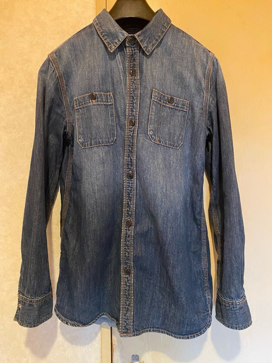 - gap デニムジーンズダンガリーシャツgジャンカバーオールvintagewashワークシャツインディゴ アメカジジージャン