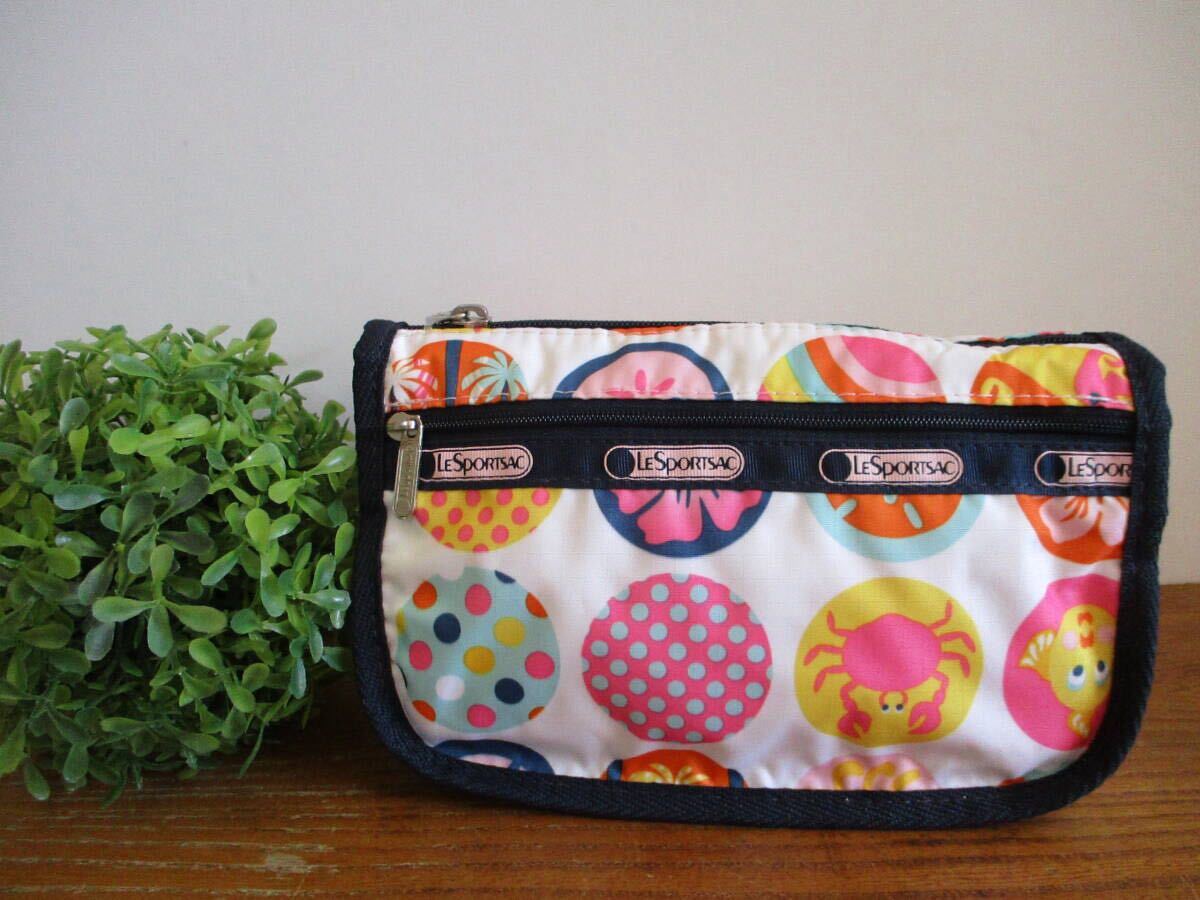 > 【未使用・送料込】レスポートサック LeSportsac ホワイト 夏 海 ハイビスカス柄 2段ポーチ 化粧ポーチ コスメポーチ 小物入れ 人気 軽量