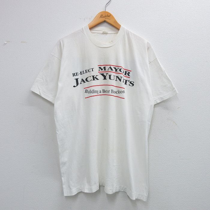 - XL/古着 スクリーンスターズ 半袖 ビンテージ Tシャツ メンズ 80s JACK YUNITS BROCKTON クルーネック 白 ホワイト 25jun07 中古