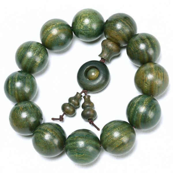 - [EasternStar] 海外発送 アメリカ 緑檀 グリーン サンダルウッド ブレスレット お守り 数珠 念珠 20mm 12玉 小孔 転運玉