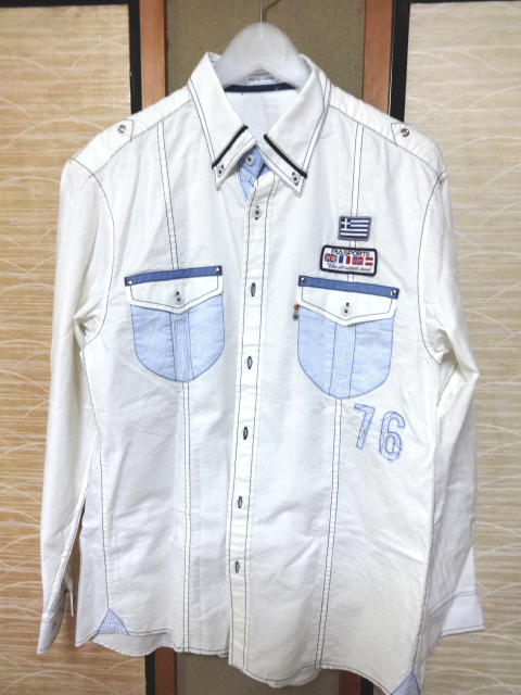 - 春夏 L ▼ パジエロ ▼ 長袖シャツ 凝った造り 綿 100パーセント ホワイト 4号 L位