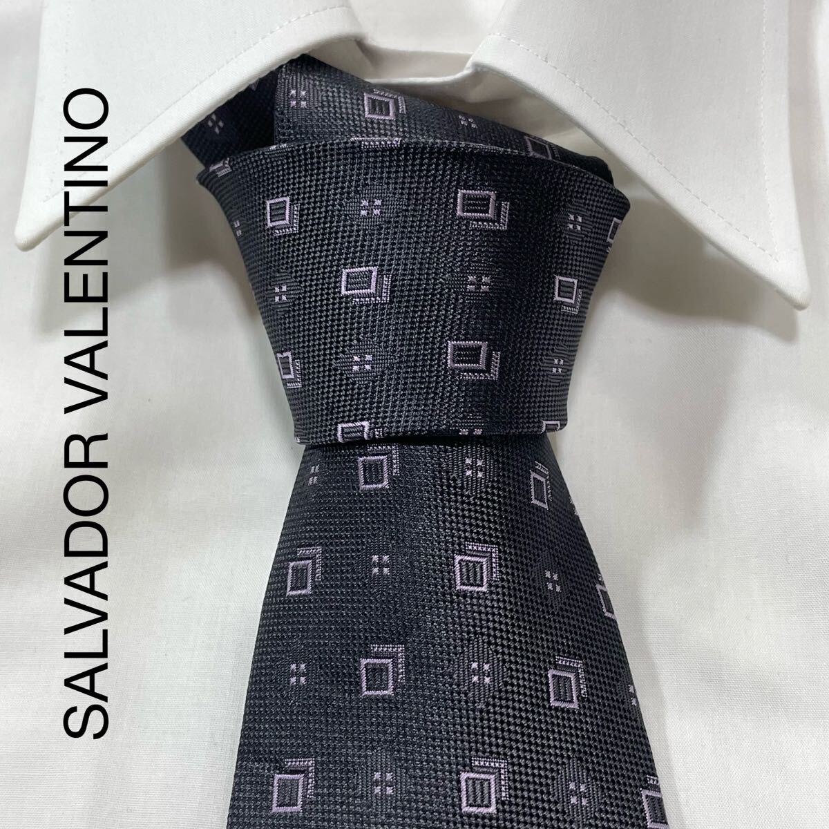 - SALVADOR VALENTINO パターン柄 ジャガード シルク ネクタイ グレー TG2137