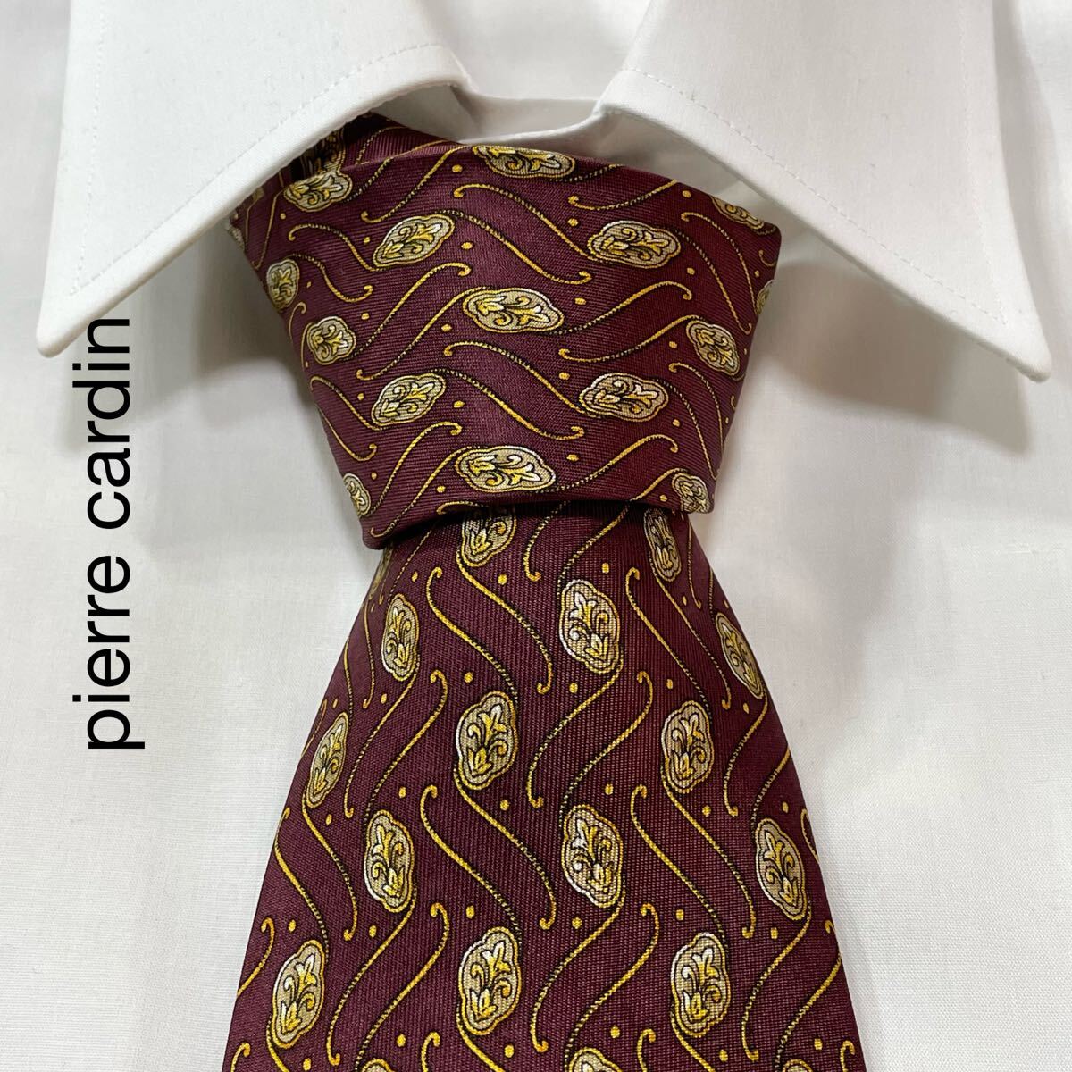 - pierre cardin ピエールカルダン パターン柄 シルク ネクタイ イタリア製 ワイン TG2184