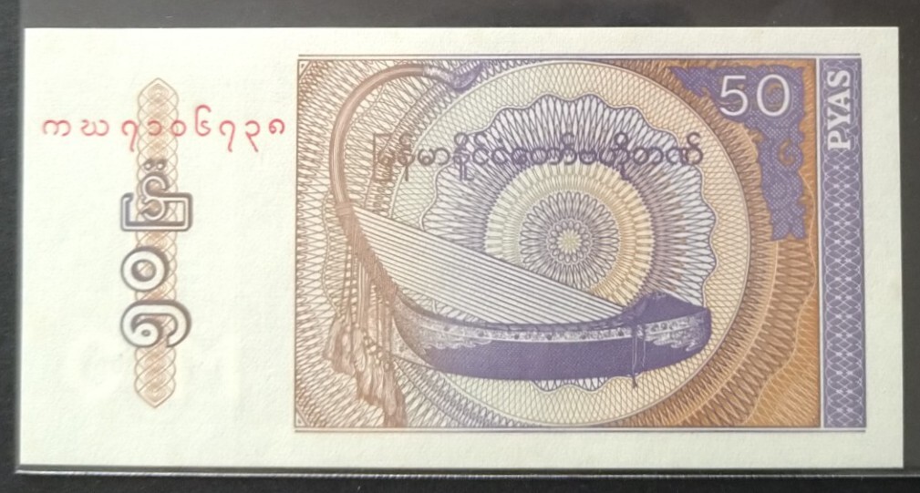 - ミャンマー・50パイア紙幣(1枚)【中古】