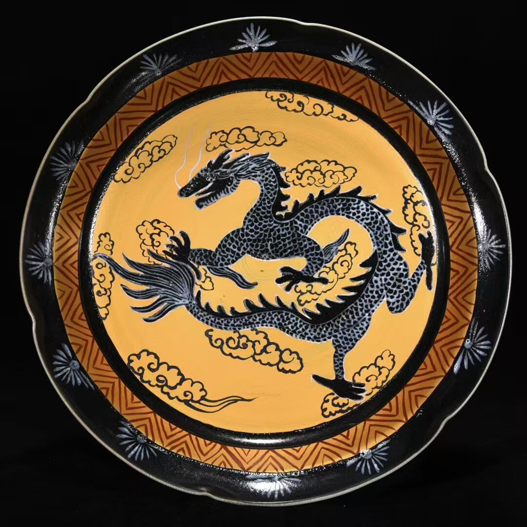 > 磁器 秘藏 宋代 汝窯 ラッカー彩色金竜紋花口皿 酒器 茶器 唐磁 染付 陶磁器 收蔵品 古美味 時代物 古美術 古置物 希少珍品 中國文玩6.117