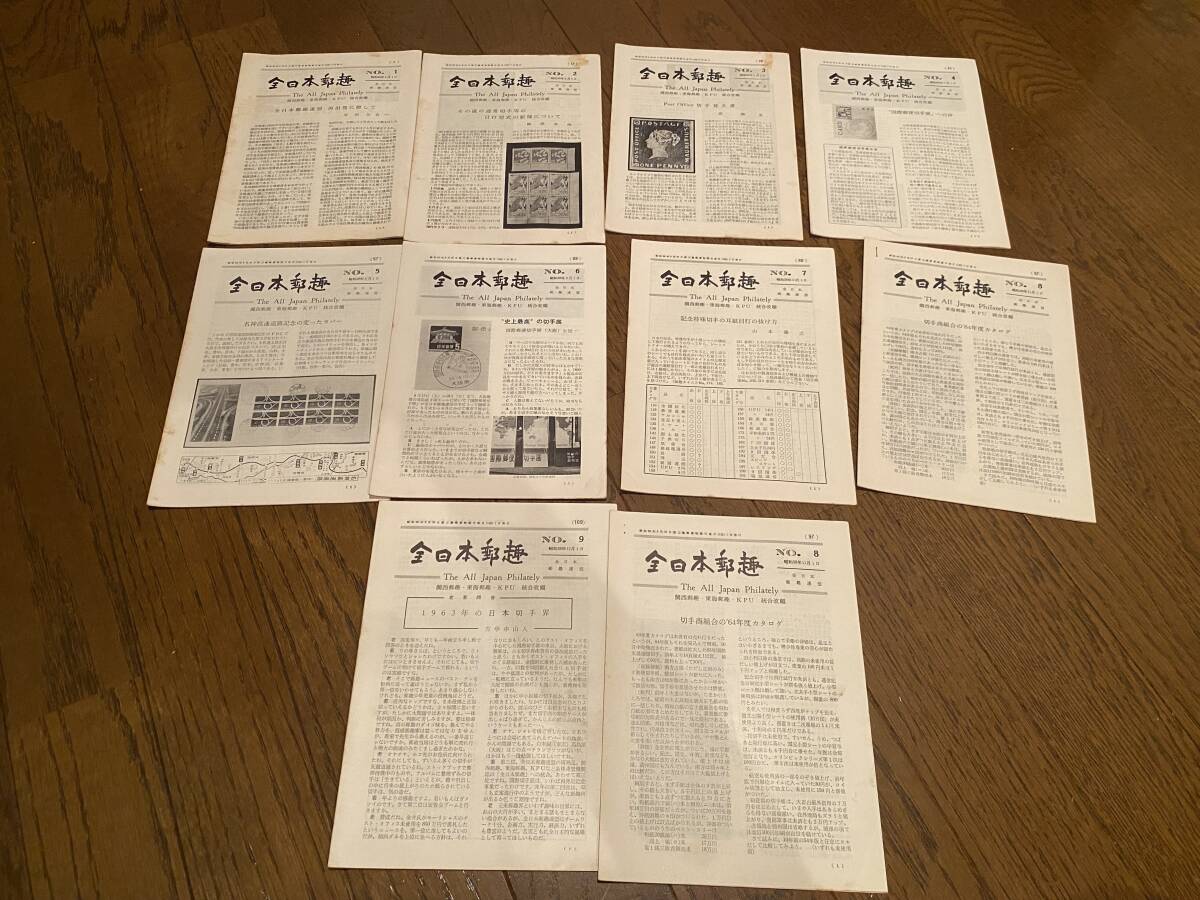 - 切手 希少「全日本郵便」No1〜9 昭和38年4月〜12月 10枚セット KK5679