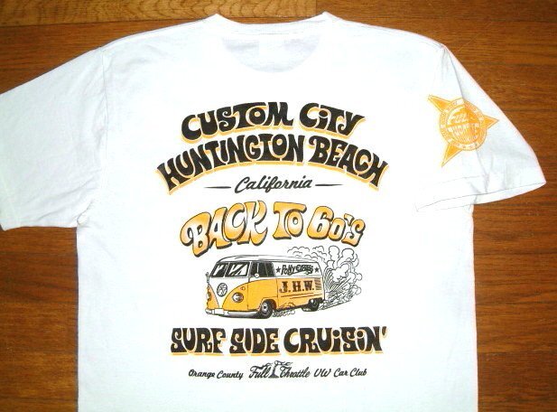 背中に大きくメインモチーフの【カスタムカー(ワーゲンバス)】が、
