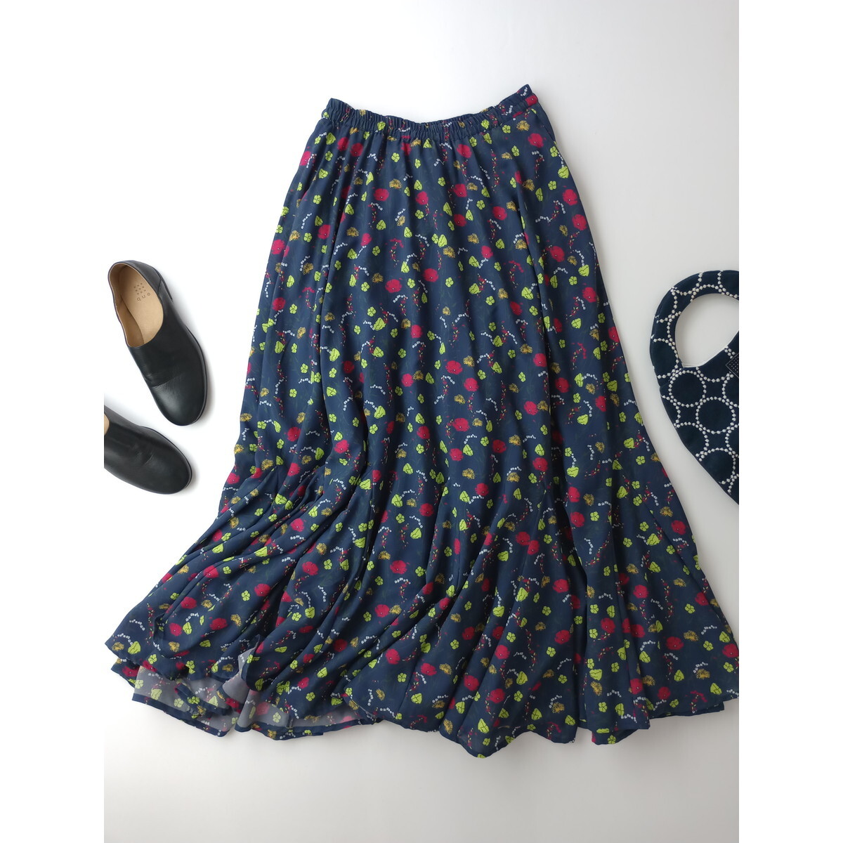 > MARIHA × TOMORROWLAND マリハ トゥモローランド 別注 月影の ロング スカートロング フレンチガーデン花柄 総柄 ボタニカル柄 ネイビー