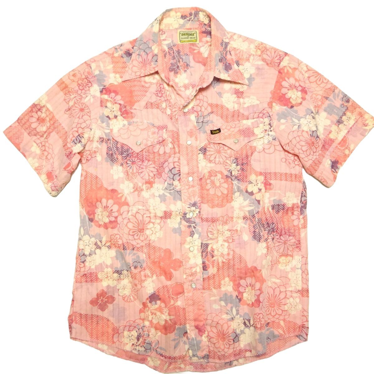 > ★ドゥニーム★半袖和柄シャツM/ピンクDenimeメンズウエスタンシャツアロハシャツ総柄シャツ花柄シャツ桜アメカジ古着半袖シャツSHINS