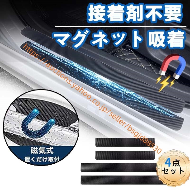 - サイドステップガード マグネット式 スカッフプレート ステップガード サイドステッププロテクター カーボンシート hua-433