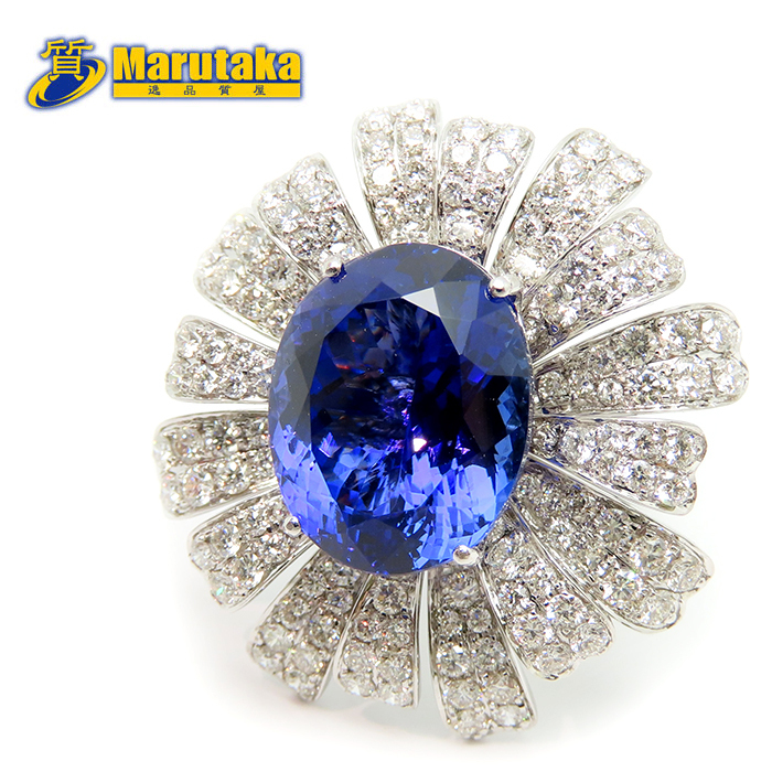 - タンザナイト ダイヤモンド ホワイトゴールド リング 鑑別書 花型 13.716ct 3.22ct 18号 750 逸品質屋 丸高 尼崎 K18WG
