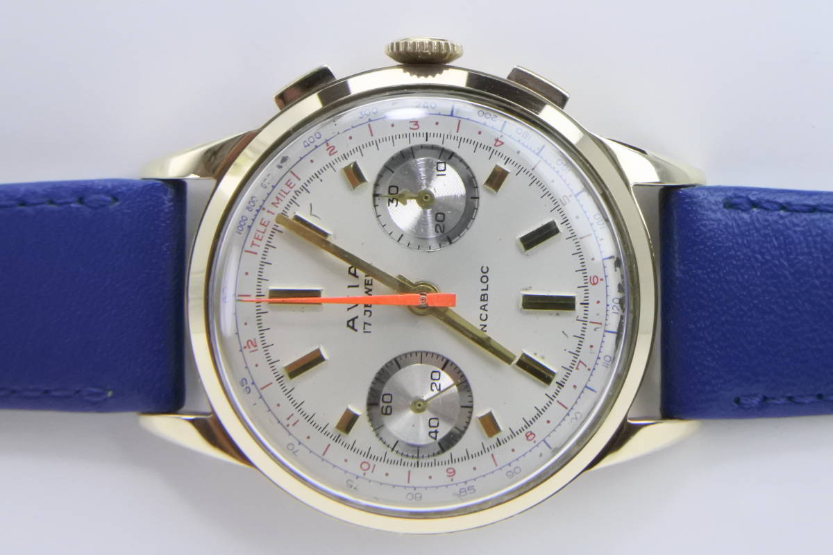 - K9金 *1950年代頃SWISS製 AVIA ツーレジスター クロノグラフ ランデロン248 手巻紳士腕時計 中古逸品