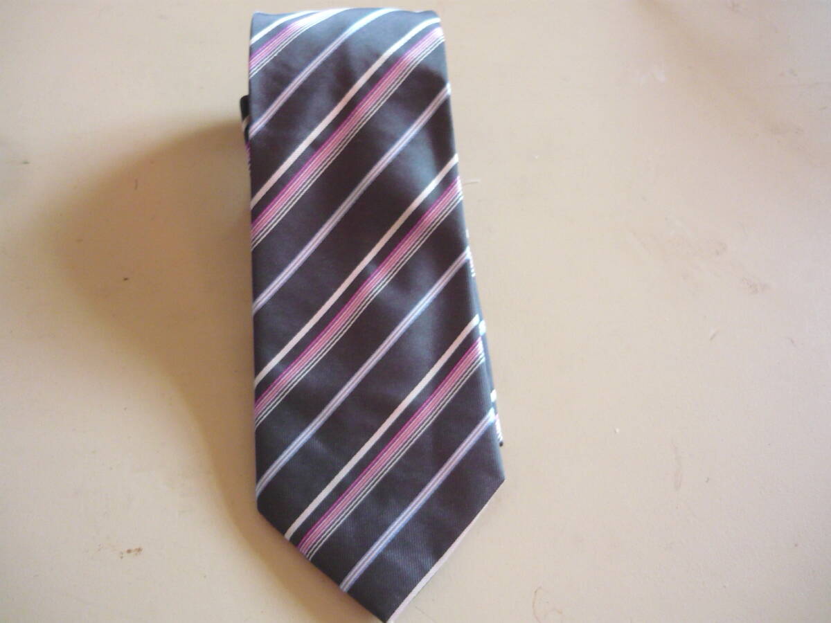 - 中古*SUITS&SUITS*ネクタイ*グレーにピンクなどのストライプ