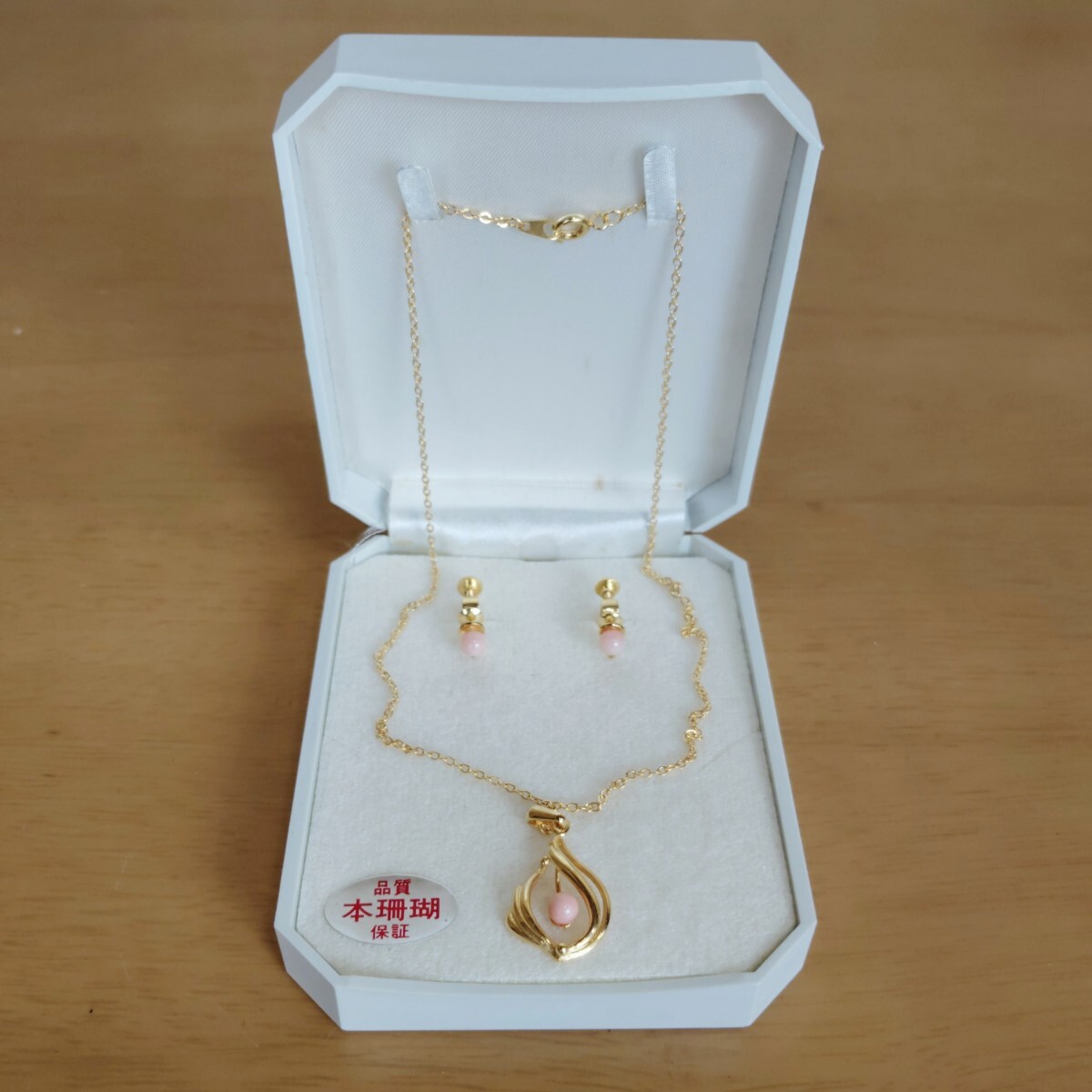 - ネックレス イヤリング 本珊瑚 ゴールド ピンク レディース