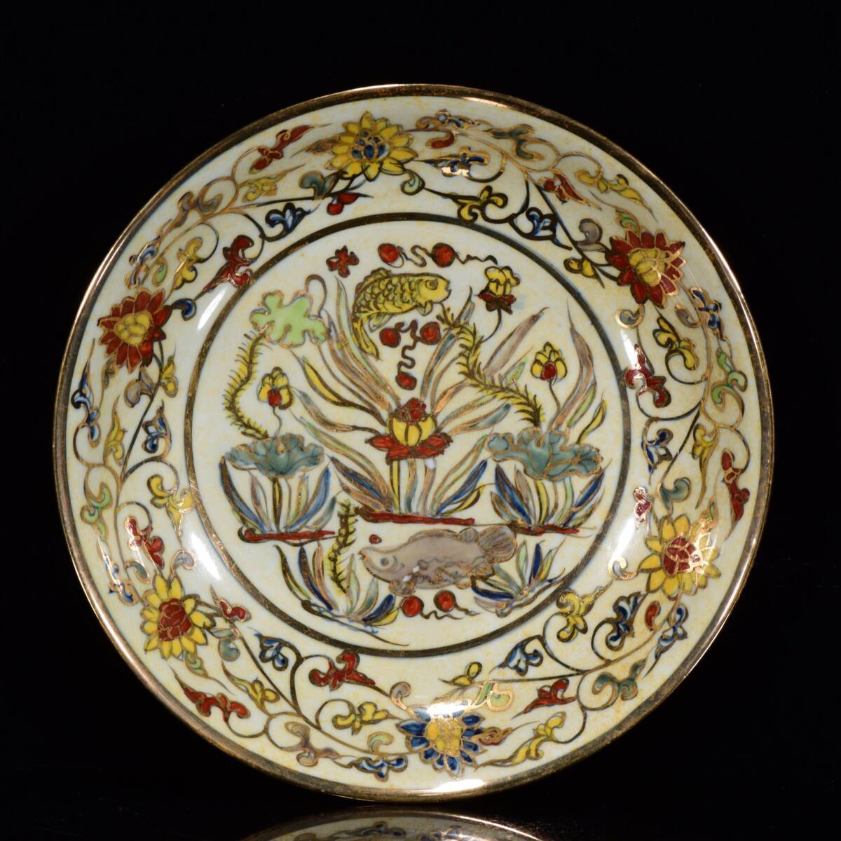 - 『館蔵珍品 明 成化年製款 古陶瓷品 斗彩 描金 魚藻紋 供盤 陶藝』稀少珍蔵品 古賞物 貴重物品 収蔵品 中国古美術 時代物 古董品