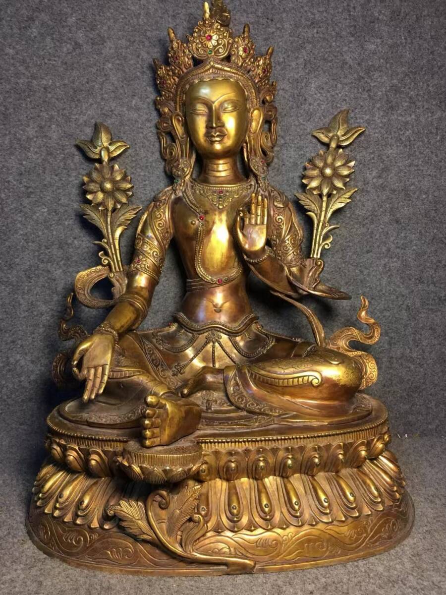 - 仏像 清代 旧蔵 チベット古寺 古銅に宝石をちりばめた仏教観音仏像 銅製 銅琉金 唐物 收蔵品 時代物 古置物 希少珍品 供養品 文房具6.17