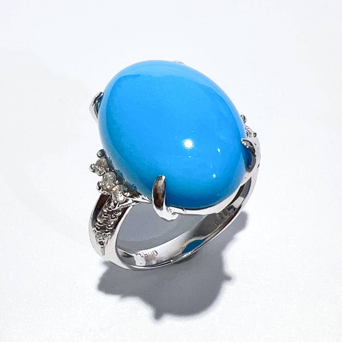 - Pt900 天然 ナチュラル 無調色 ターコイズ トルコ石 ダイヤ リング 11.5号 D0.26ct 8.7g 鑑別書 レディース ジュエリー 指輪 美品