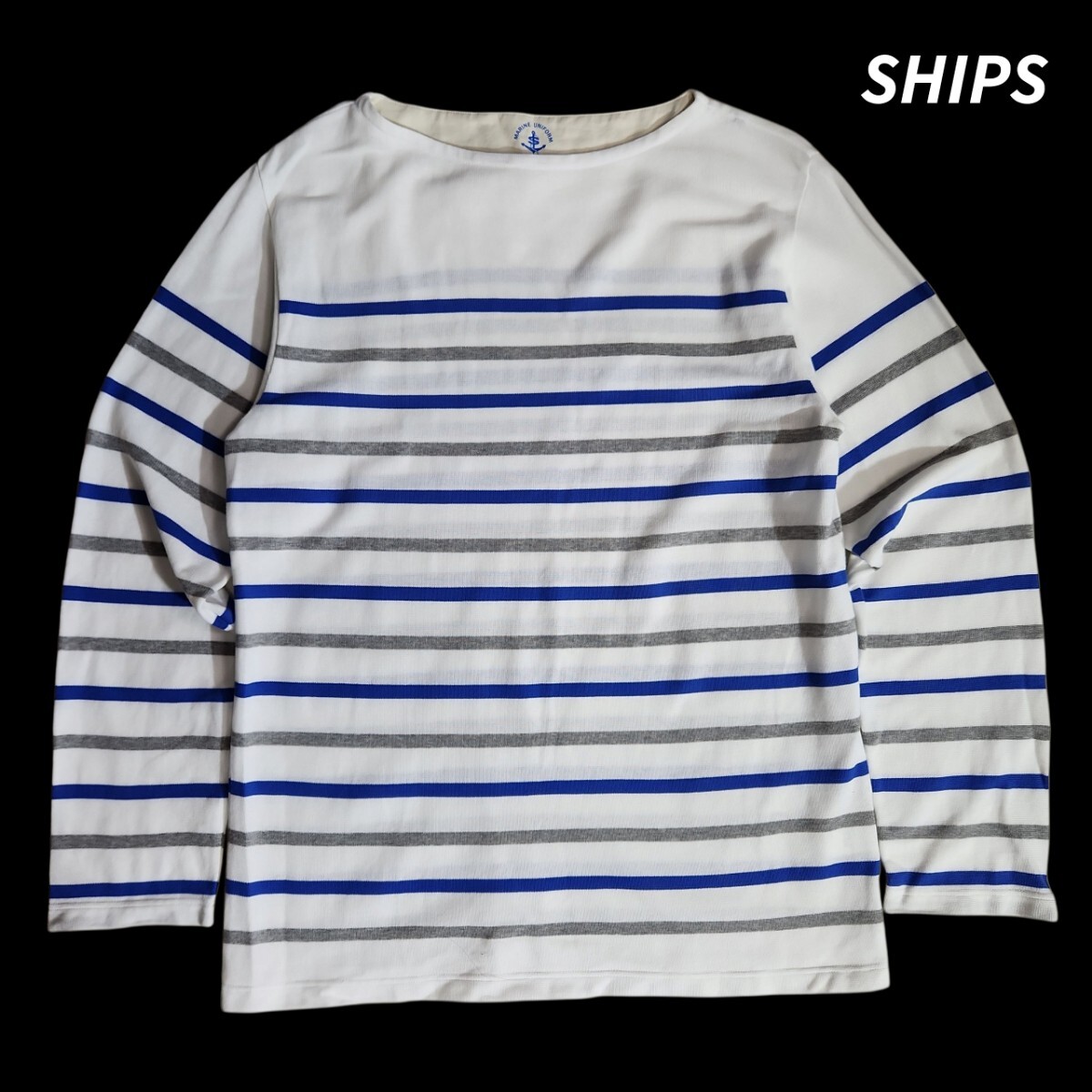 > SHIPS MARINE UNIFORM 柔らかコットン素材 ボーダー柄 バスクシャツ 表記M 白 グレー 青 ロンT 84568