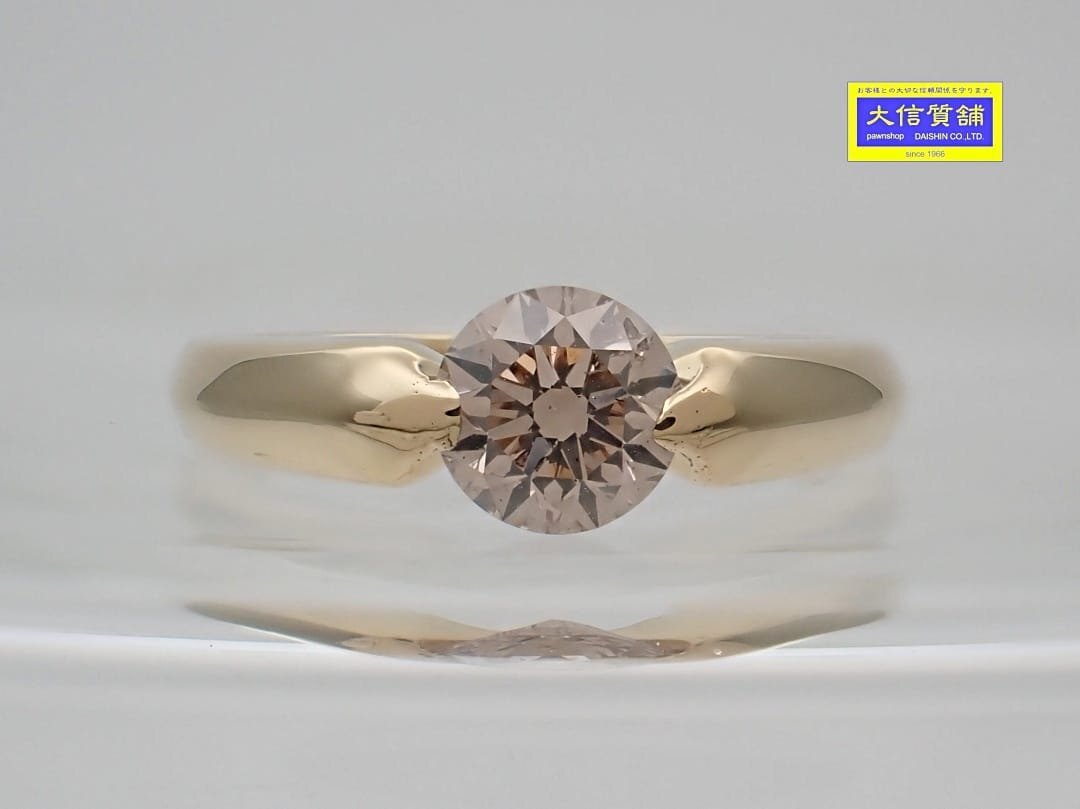 > K18 イエローゴールド ブラウンダイヤリング 0.70ct 9号 2.82g 中古A+ 【送料無料】 C-9456