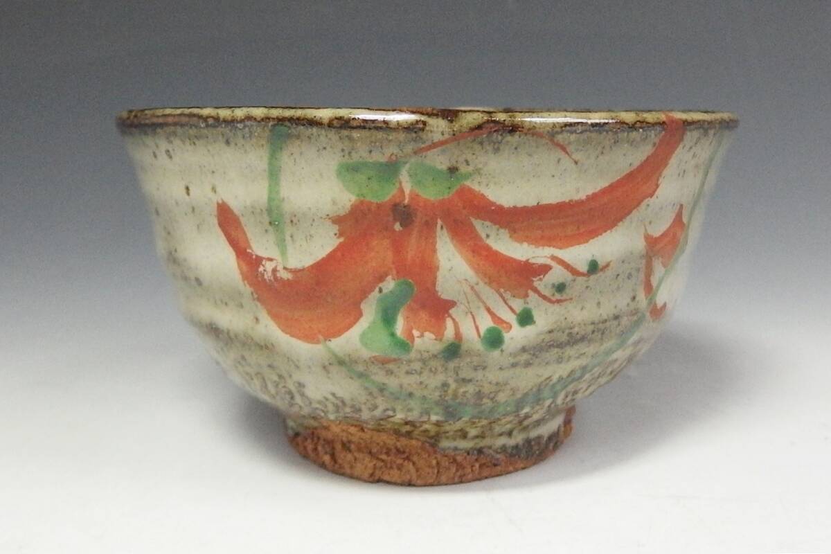 - 本物保証 若尾利貞 赤絵茶碗 在銘有り 共箱 本物返品OK 250613−11