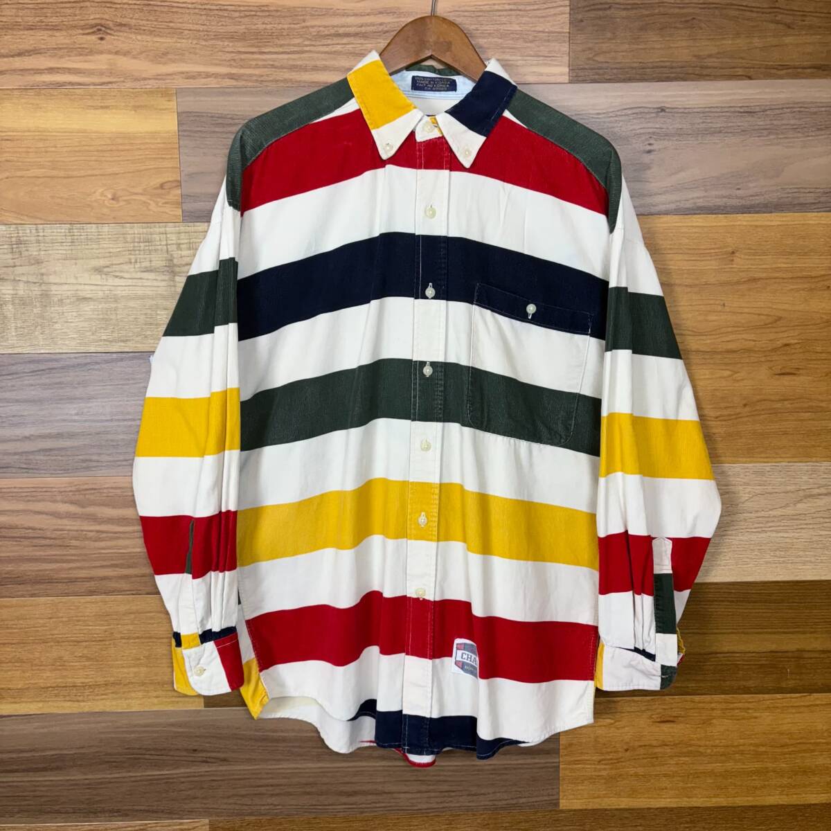 - 90s CHAPS Ralph Lauren チャップス ラルフローレン 太ボーダー コーデュロイ 長袖シャツ サイズ メンズ M 90年代 古着 r25052776
