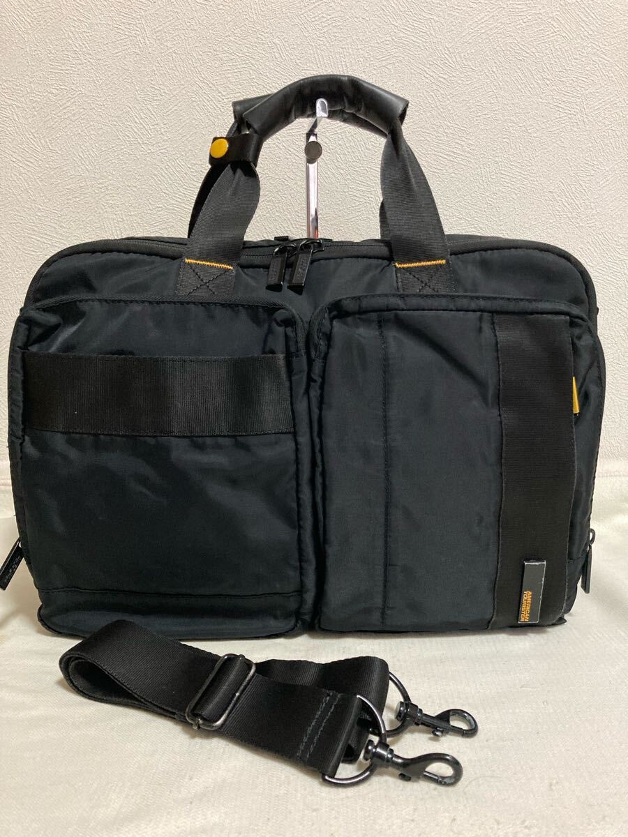 - 【激安】American Tourister アメリカンツーリスター 2室式2way軽量ブリーフケース 黒 底鋲有 お洒落 使える 激安!