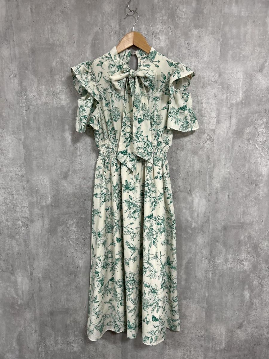 > ネコポスOK Pumpkin Port パンプキンポート 花柄 フレア ロング ワンピース sizeM/アイボリー×グリーン ■◆ レディース