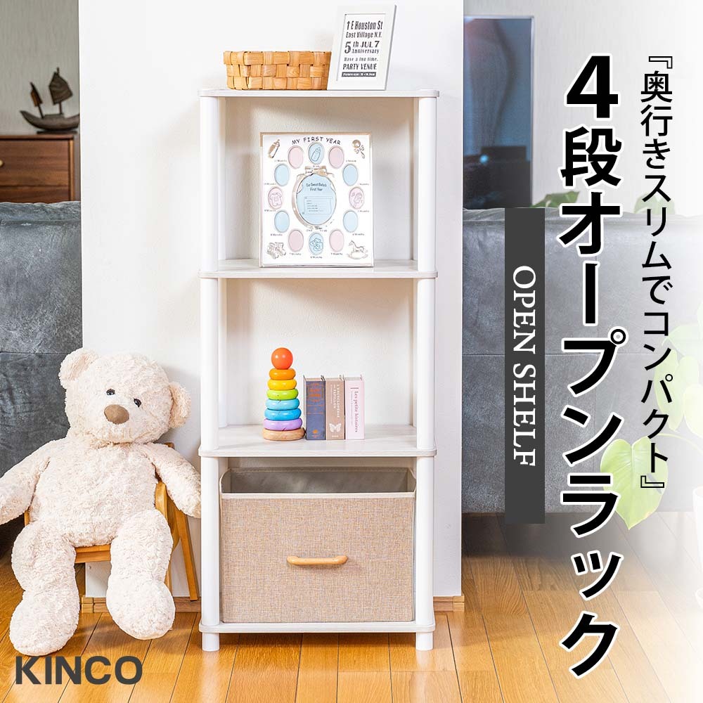 - 4段オープンラック マルチラック 多目的ラック 収納棚 壁面収納 オープンシェルフ キッチンラック ランドリー おしゃれ 木目 OP4 BW 1